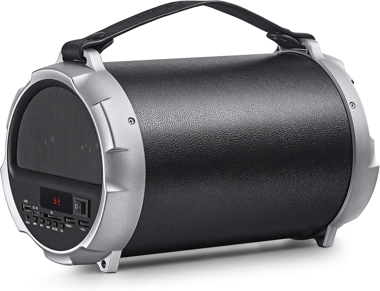 Figure 1.1: ARISEN RockTeen Portable Bluetooth Speaker. This image displays the speaker from an angled perspective, showcasing its cylindrical design, control panel on the left side, and integrated carrying handle.